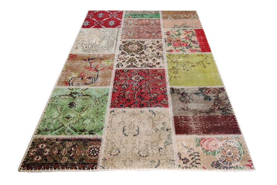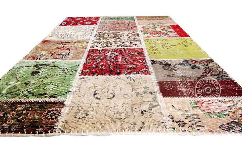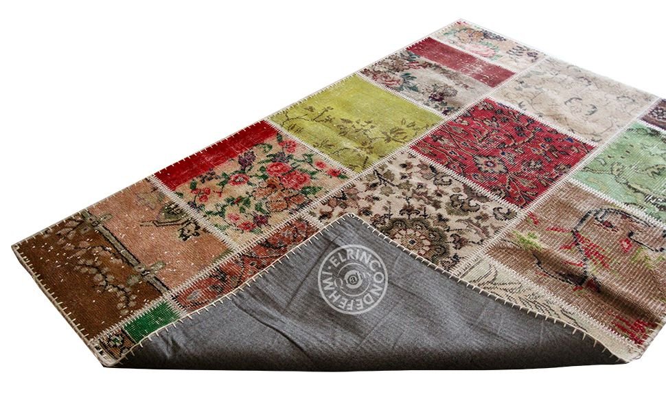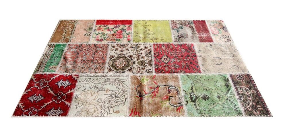 The patcwork rugs are made by recycling hanmade vintage rugs. Then, they are dyed with monochromatic vegetal dyes to have a range of brillant tones and natural shades. The patchwork method allows rugs to be produced in the desired dimensions and helps to obtain the desired visual effect. All stages of patchworknare manually performed with valuable threads. The patchwork technique avoids waste of precious vintage rug.
