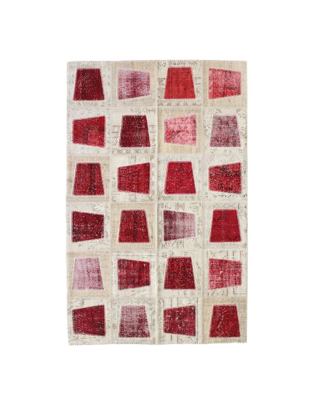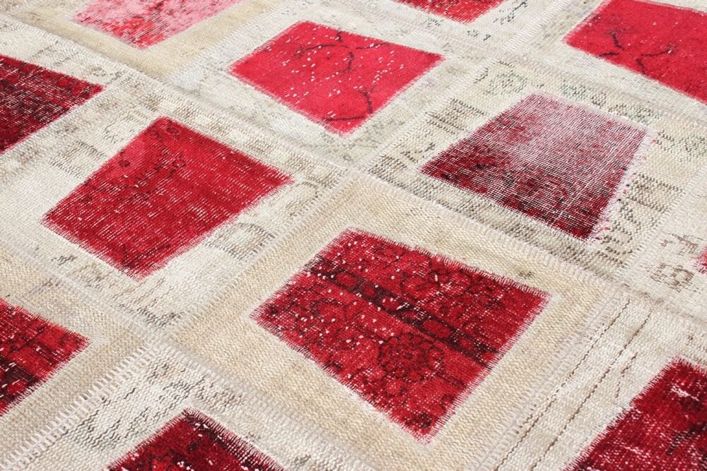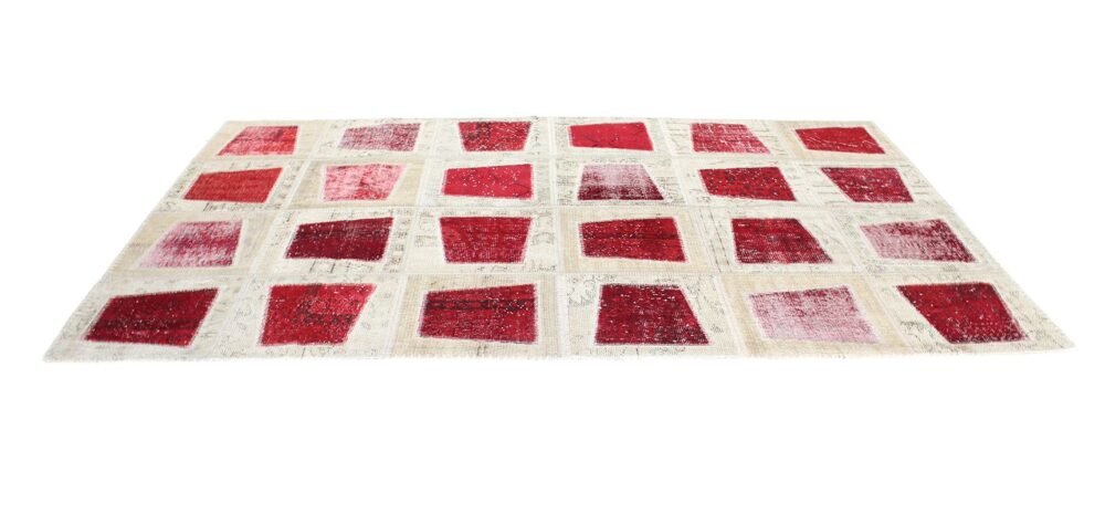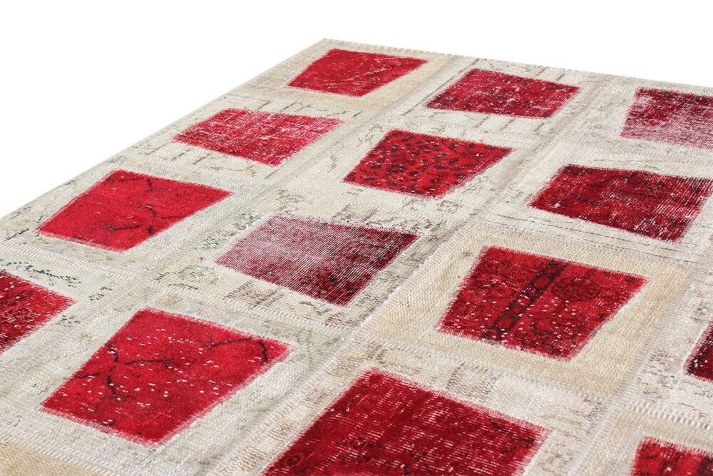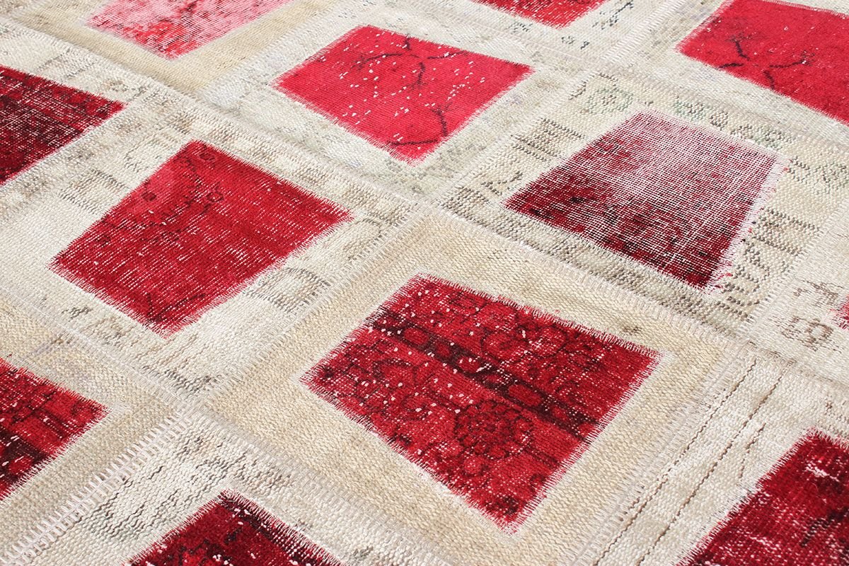 The patcwork rugs are made by recycling hanmade vintage rugs. Then, they are dyed with monochromatic vegetal dyes to have a range of brillant tones and natural shades. The patchwork method allows rugs to be produced in the desired dimensions and helps to obtain the desired visual effect. All stages of patchworknare manually performed with valuable threads. The patchwork technique avoids waste of precious vintage rug.
