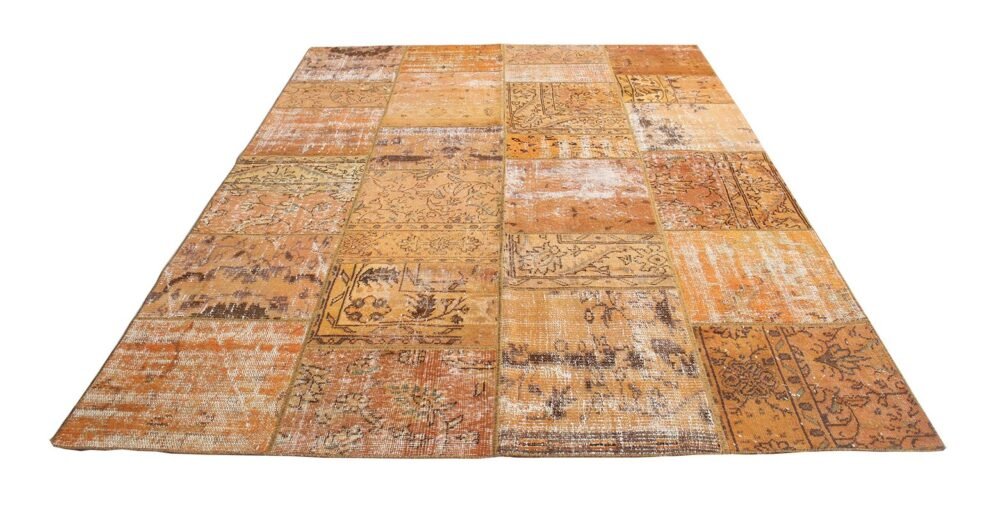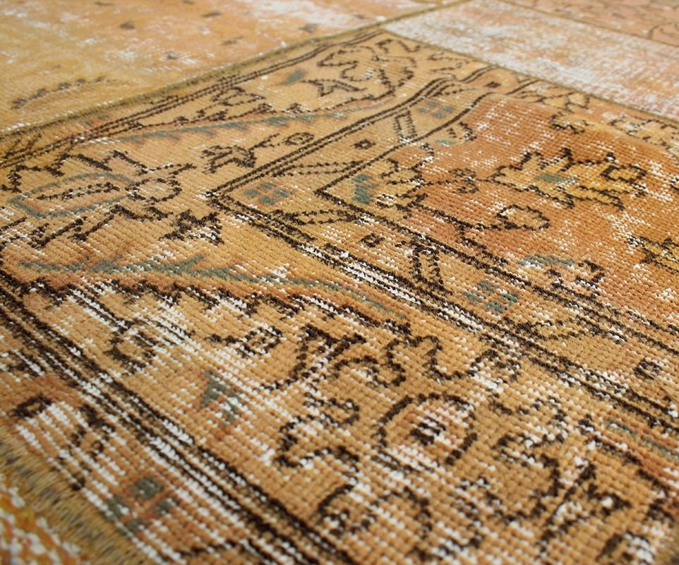 The patcwork rugs are made by recycling hanmade vintage rugs. Then, they are dyed with monochromatic vegetal dyes to have a range of brillant tones and natural shades. The patchwork method allows rugs to be produced in the desired dimensions and helps to obtain the desired visual effect. All stages of patchworknare manually performed with valuable threads. The patchwork technique avoids waste of precious vintage rug.