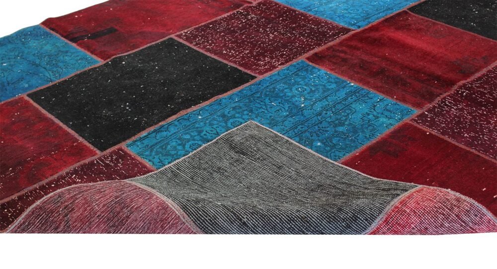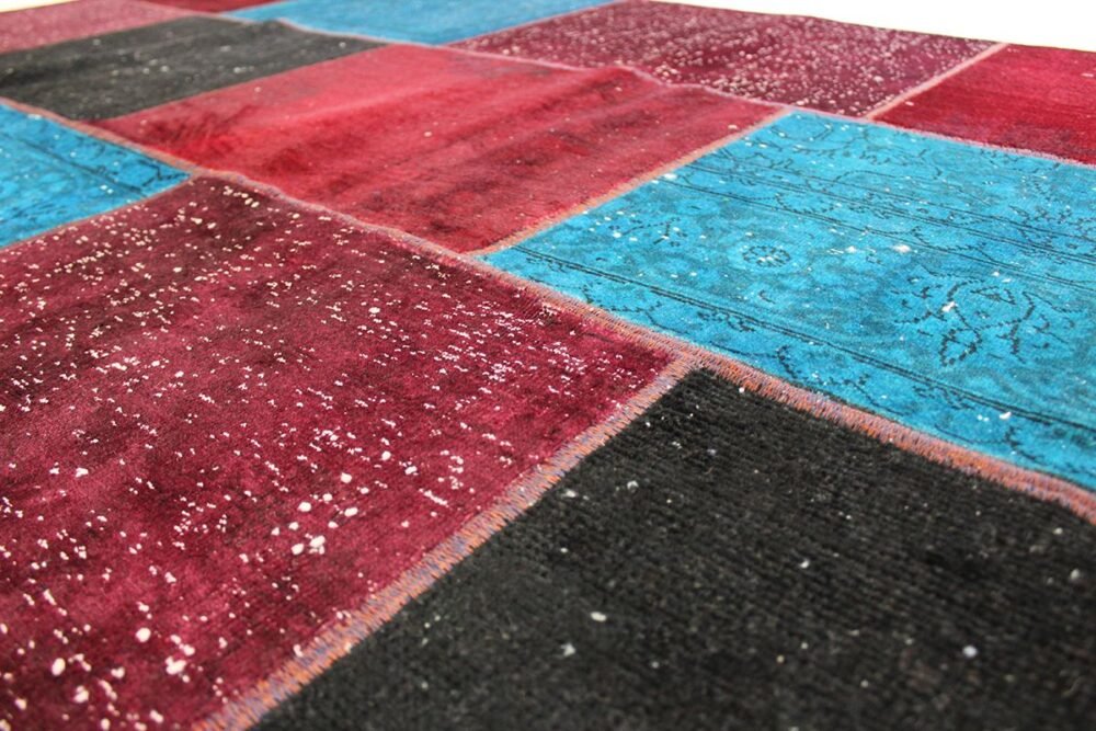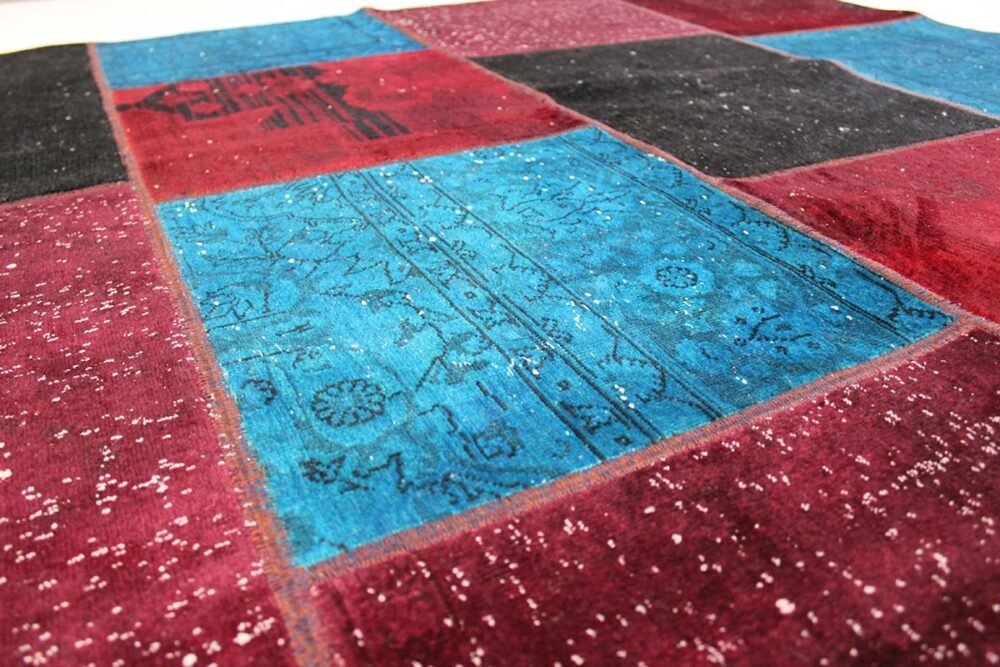 The patcwork rugs are made by recycling hanmade vintage rugs. Then, they are dyed with monochromatic vegetal dyes to have a range of brillant tones and natural shades. The patchwork method allows rugs to be produced in the desired dimensions and helps to obtain the desired visual effect. All stages of patchworknare manually performed with valuable threads. The patchwork technique avoids waste of precious vintage rug.