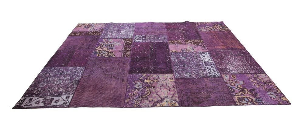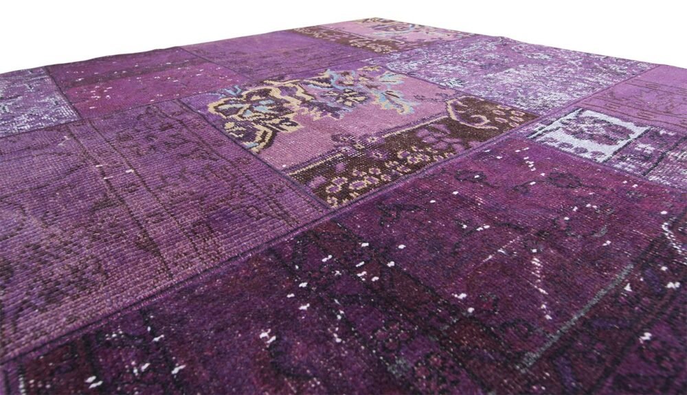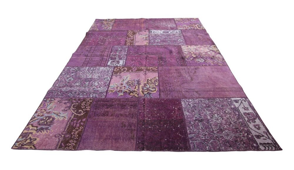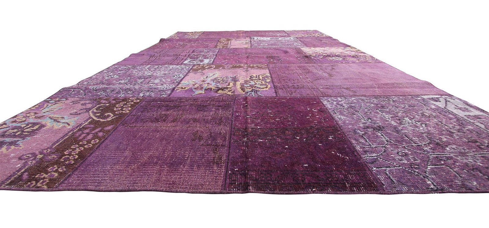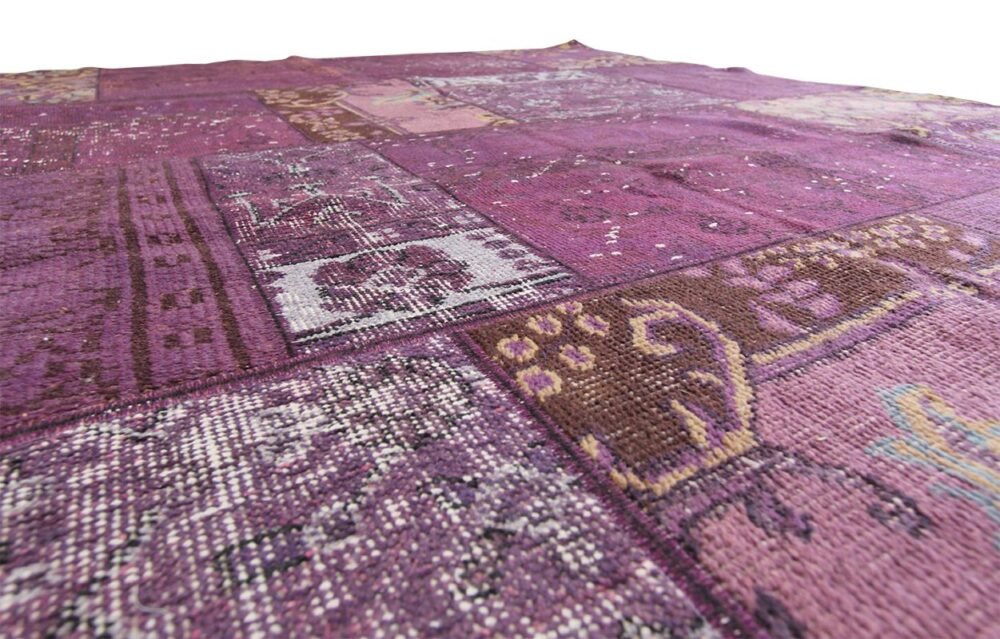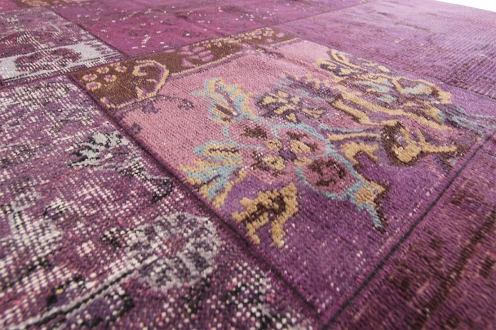 The patchwork carpets are made by recycling handmade vintage rugs. Then, they are dyed with monochromatic vegetal dyes to have a range of bright tones and natural shades. The patchwork method allows rugs to be produced in the desired dimensions and helps to obtain the desired visual effect. All stages of patchworks are manually performed with valuable threads. The patchwork technique avoids waste of precious vintage rug.