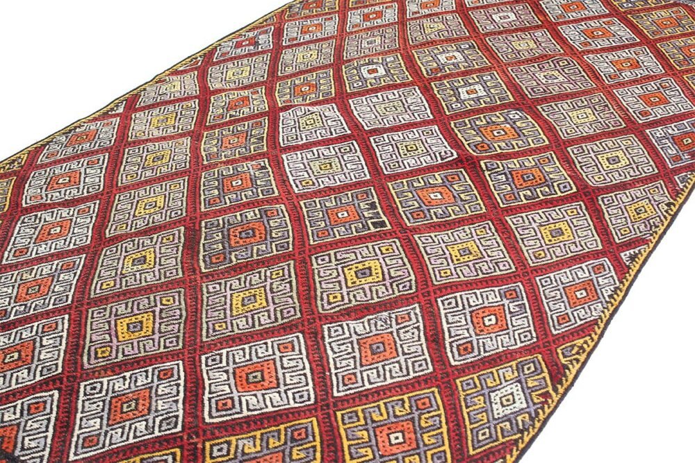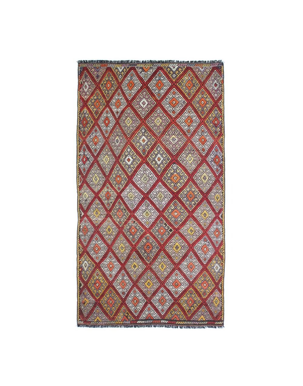 Kilim cicim is a type of flat weave technique, somewhat resembling but stronger and thicker than kilim, with a smooth front face and a ragged back, where kilim is smooth both sides. Cicim lacks the slits characteristic of kilim, as it is usually woven with supplementary weft threads as continuous supports.
