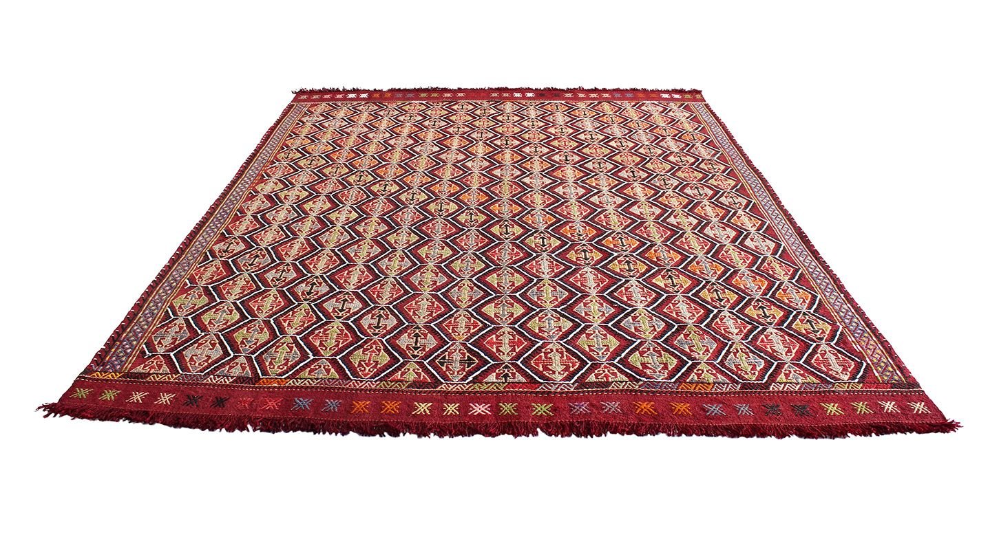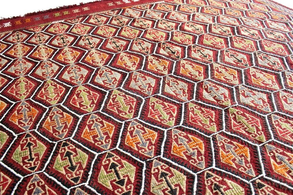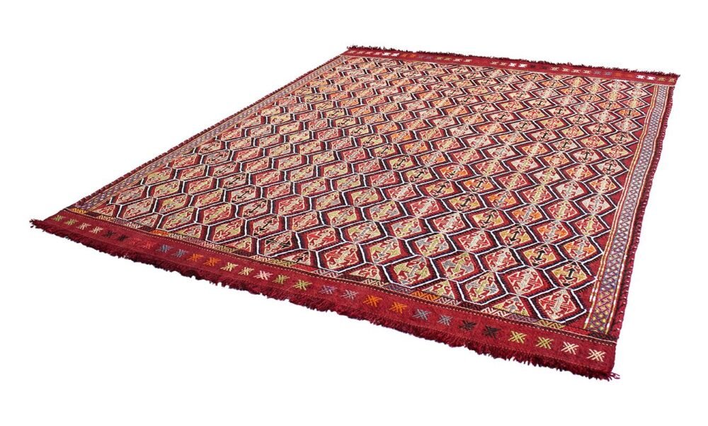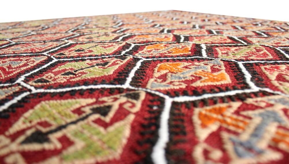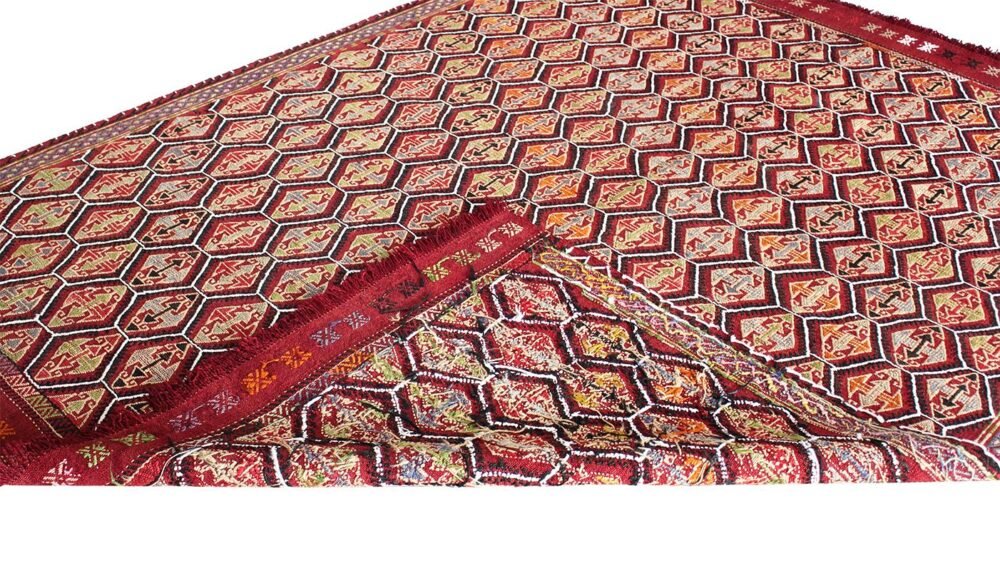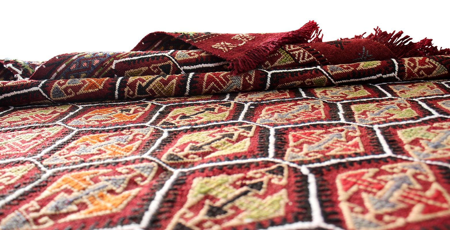 What is a kilim? Unlike carpet which it has long-short hairy and knotted surface, the kilim has a flat surface resulting from its weaving through the technique of the tapestries which gives rise to a kind of thick cloth. Because it is made with wool, cotton or even goat hair, the kilim is not only lighter when it is carried from one place to another; but also it allows for various purposes such as housing divisions, blankets …. Its form of fabric prevents the sand embedding in its structure.