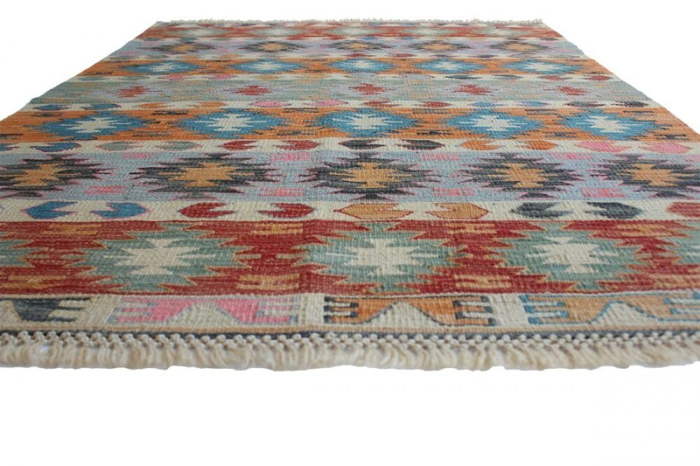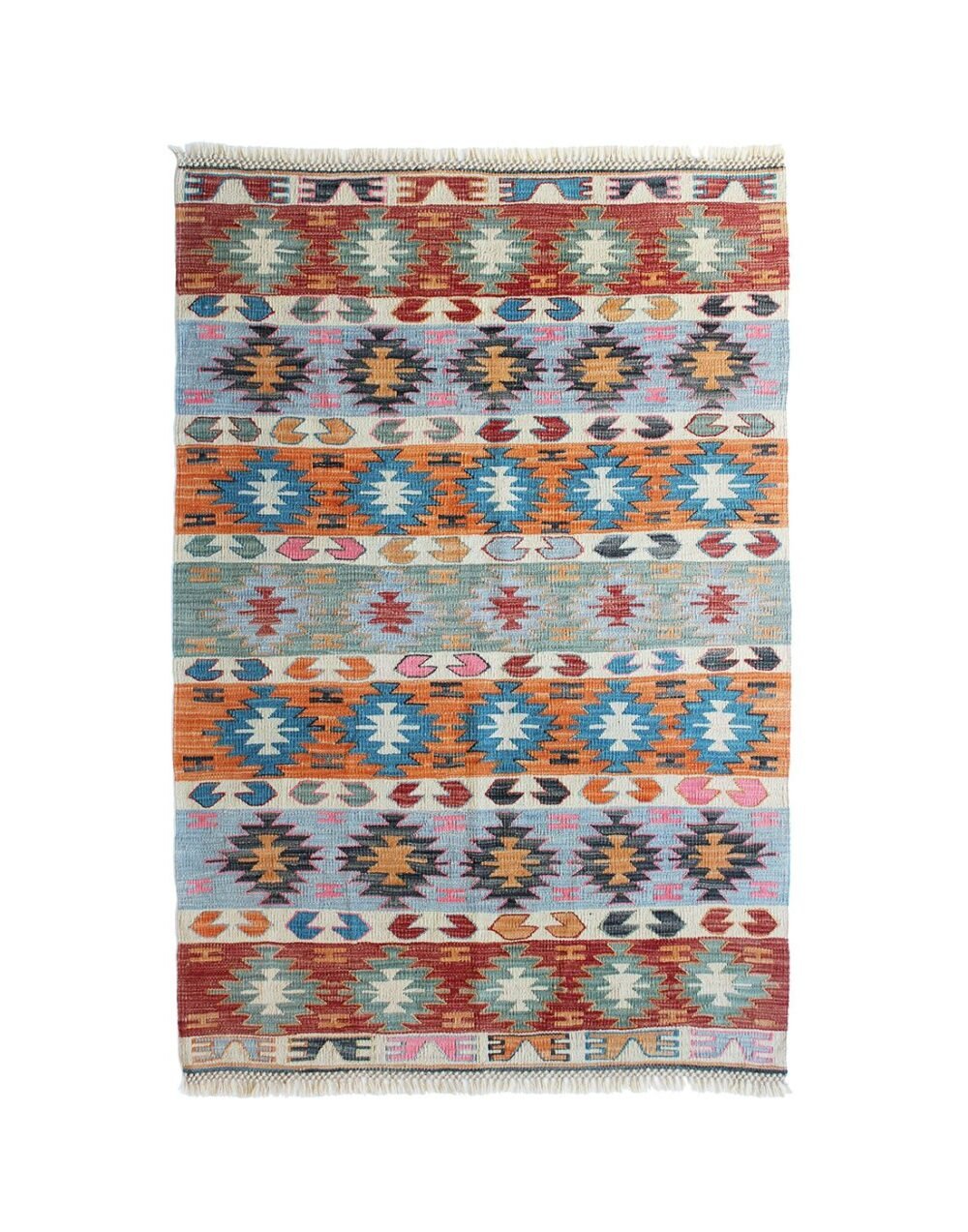 What is a kilim? Unlike carpet which it has long-short hairy and knotted surface, the kilim has a flat surface resulting from its weaving through the technique of the tapestries which gives rise to a kind of thick cloth. Because it is made with wool, cotton or even goat hair, the kilim is not only lighter when it is carried from one place to another; but also it allows for various purposes such as housing divisions, blankets …. Its form of fabric prevents the sand embedding in its structure.