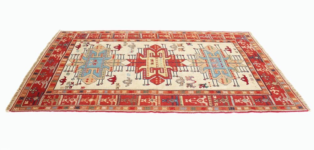 The best specimens of this rug called rahrah, just as the sumaks originally come from the Caucasus region, northwestern Iran and other regions of central asia. Also Kurdish weavers in eastern Turkey have sometimes produced a few copies of soumak or rahrak kilim without plot.