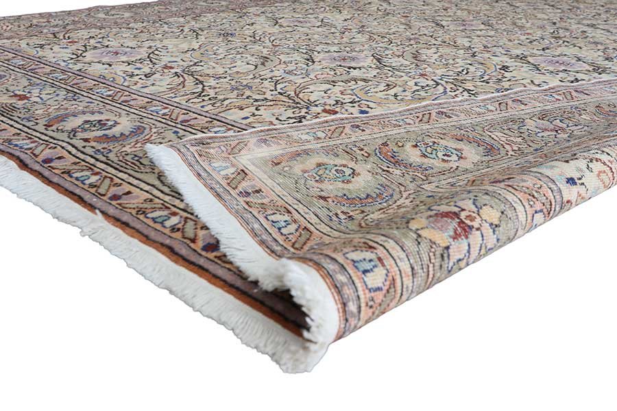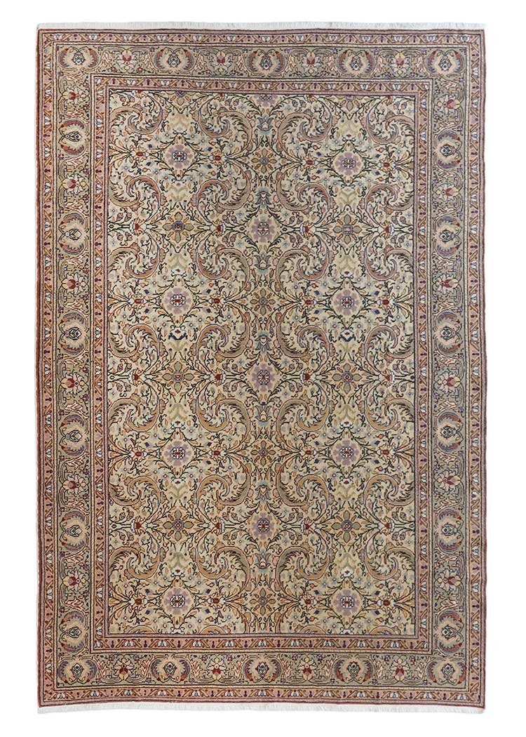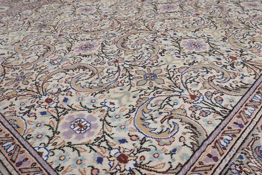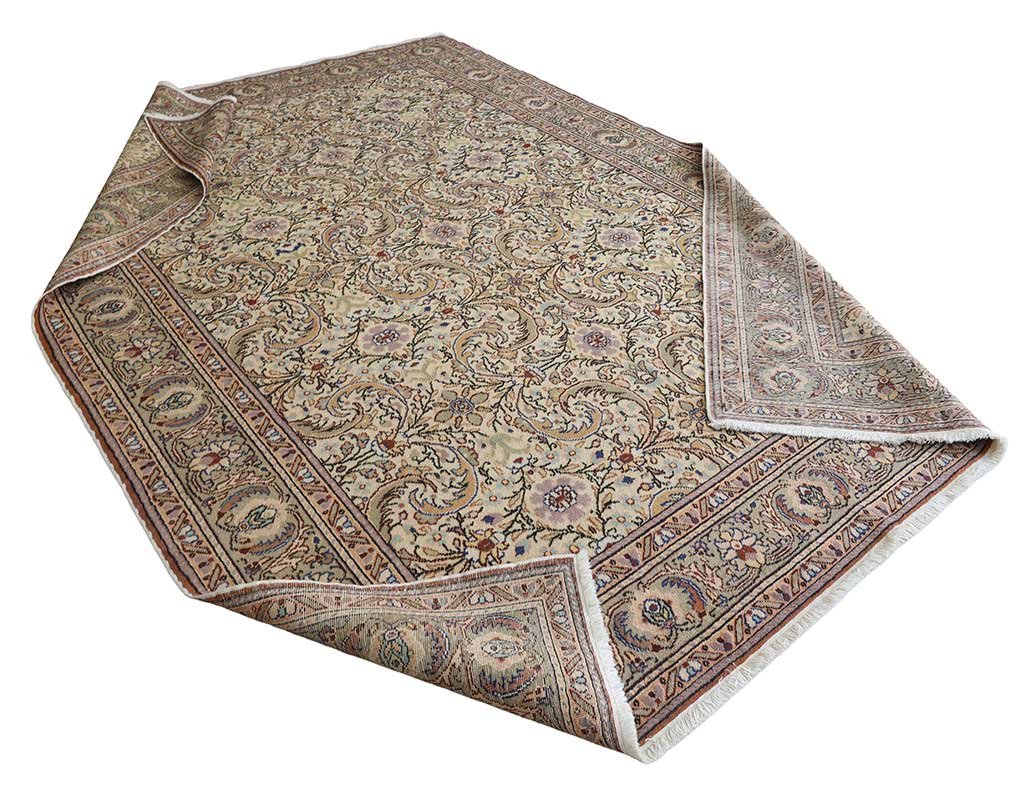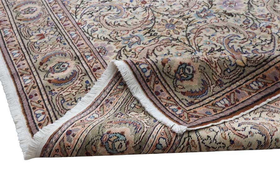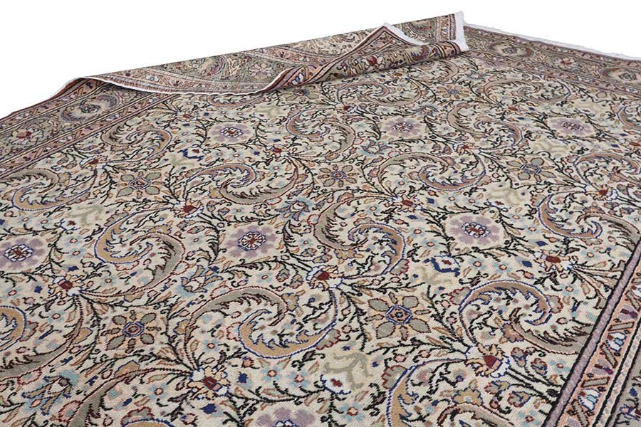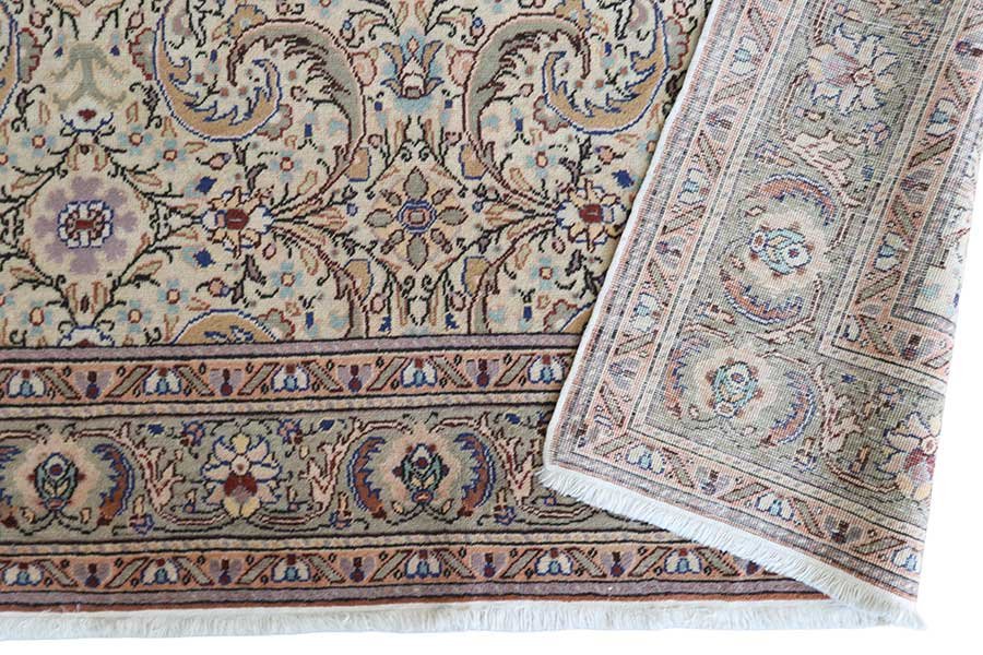 Con una antigüedad estimada de 30 a 40 años, esta alfombra se considera semiantigua, pero nunca ha sido usada, conservando la textura, brillo y firmeza del tejido original. Es una pieza que refleja el equilibrio perfecto entre la tradición artesanal y la durabilidad contemporánea.