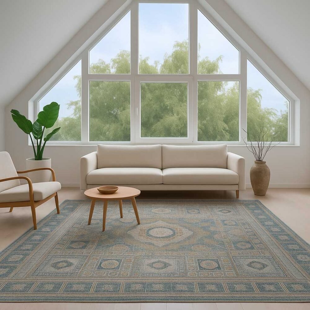 Haz que tu hogar cuente una historia de elegancia y equilibrio visual con la alfombra Norma Azul, una pieza con identidad propia que aporta distinción y calidez a cualquier espacio.