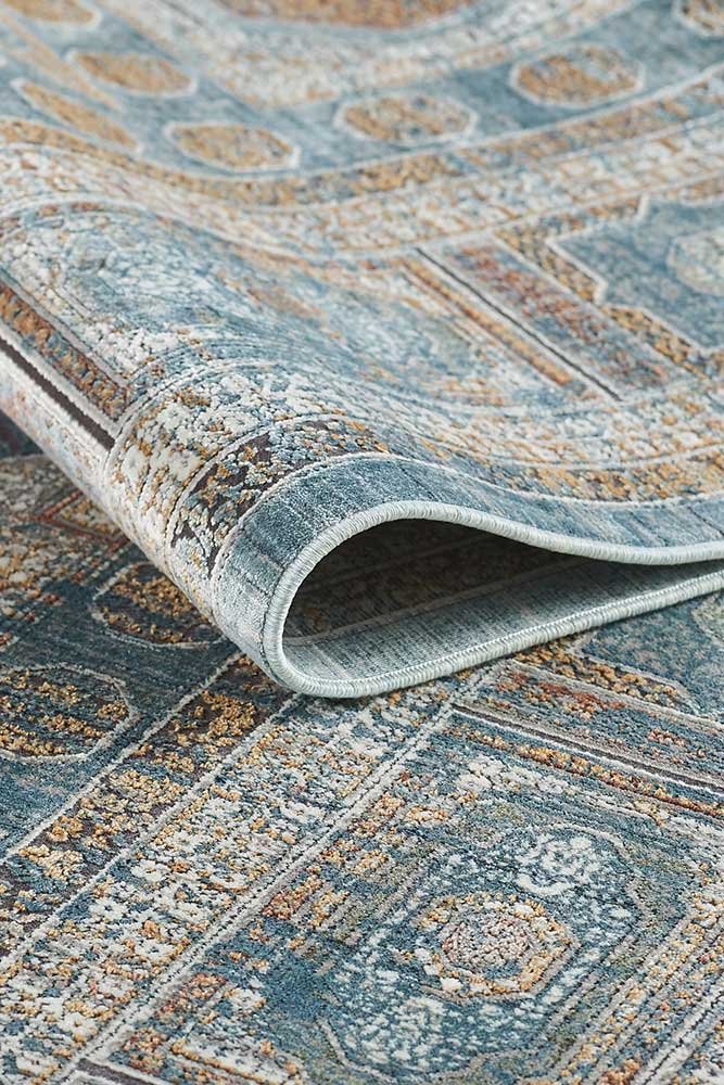 La Alfombra Norma Azul es una pieza decorativa que destaca por su elaborada composición geométrica y su elegante combinación de tonos azules, beiges y toques ocres. Con un diseño que recuerda a los antiguos tapices orientales, esta alfombra es perfecta para quienes buscan añadir un toque clásico con carácter a su hogar, sin renunciar a una estética moderna y actual.