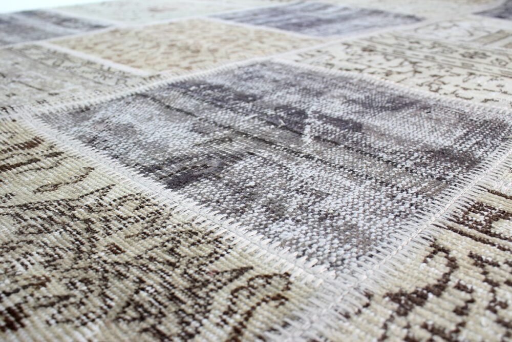 Las alfombras Patchwork están elaboradas a partir de bordar y anexar parches de restos de otras alfombras, ya sean clásicas o vintage. Están bordadas a mano y se componen de colores vegetales naturales y materiales naturales como la lana, el algodón y la seda. Todas las etapas de elaboración del patchwork están hechas a mano con hilos de alta calidad. Estas alfombras se caracterizan por poder diseñarse totalmente a medida. Podemos elegir los tonos de los colores, el decapado, el número y la forma de los parches que la componen. A diferencia de otro tipo de alfombras, podemos conseguir las medidas exactas deseadas. La ventaja de las alfombras patchwork es que en su fabricación se evita el desperdicio de valiosas alfombras de diversas épocas. Es una manera de recuperar y dar una segunda vida a las alfombras más antiguas. Por todo ello, se consideran alfombras únicas y llenas de personalidad.