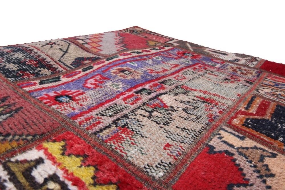 Las alfombras Patchwork están elaboradas a partir de bordar y anexar parches de restos de otras alfombras, ya sean clásicas o vintage. Están bordadas a mano y se componen de colores vegetales naturales y materiales naturales como la lana, el algodón y la seda. Todas las etapas de elaboración del patchwork están hechas a mano con hilos de alta calidad. Estas alfombras se caracterizan por poder diseñarse totalmente a medida. Podemos elegir los tonos de los colores, el decapado, el número y la forma de los parches que la componen. A diferencia de otro tipo de alfombras, podemos conseguir las medidas exactas deseadas. La ventaja de las alfombras patchwork es que en su fabricación se evita el desperdicio de valiosas alfombras de diversas épocas. Es una manera de recuperar y dar una segunda vida a las alfombras más antiguas. Por todo ello, se consideran alfombras únicas y llenas de personalidad.
