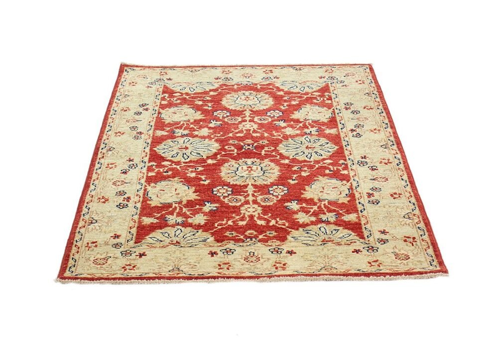 Alfombra clásica. Material: Lana y algodón. Medidas: 114 X 84 cm. Hecho a mano.