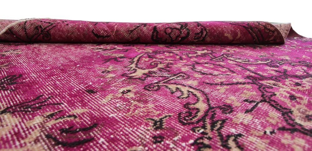 Las alfombras vintage son alfombras recuperadas de, aproximadamente, unos 20 o 30 años de antigüedad. Son alfombras que pasan por un proceso en el cual se arreglan las partes deterioradas, se rasura el pelo y se someten a un proceso de coloración natural. Este tratamiento crea un efecto desgastado, vintage, ya que la lana o el algodón de la base quedan expuestos. Dependiendo del nivel de tratamiento y de coloración que se le dé a cada alfombra, los dibujos tribales y geométricos originales desaparecen o son mínimamente perceptibles. Podemos encontrar una gama muy amplia en cuanto al nivel de lavado del dibujo original. En El Rincón de Fehmi, todas nuestras alfombras vintage son alfombras clásicas de origen turco recuperadas. Con ello, aseguramos la calidad y la resistencia de estas alfombras a las que se les da una segunda vida.