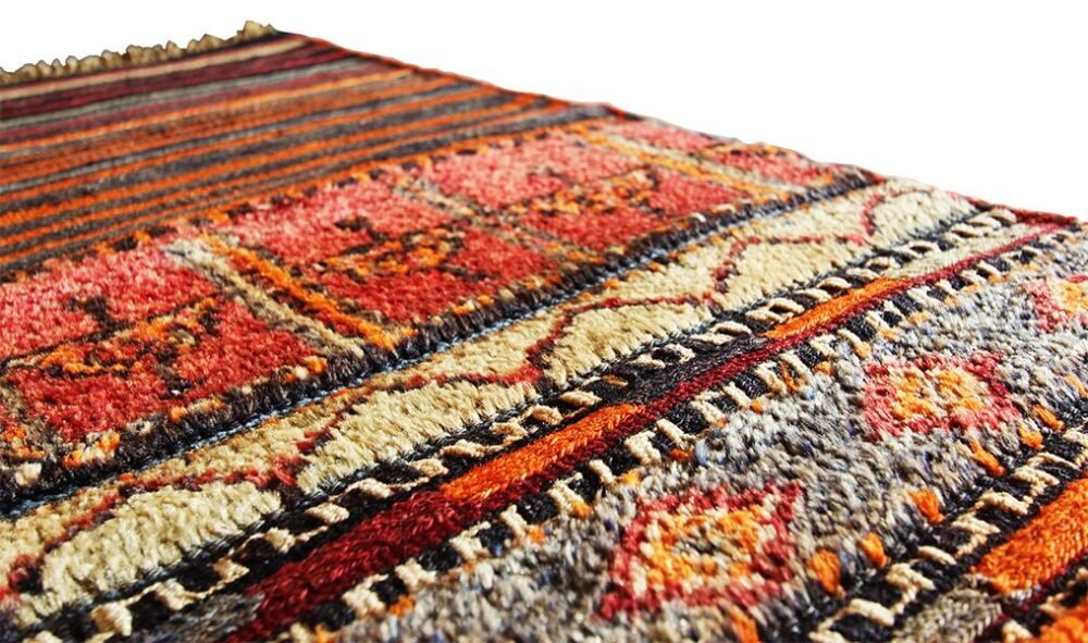 Este kilim nómada de la región noreste de Turquía mide 60×220 cm y es una auténtica pieza artesanal de los pueblos nómadas de esta zona. Con aproximadamente 30 a 35 años de antigüedad, este kilim semi-antiguo representa una rareza hoy en día, ya que es muy difícil encontrar piezas de esta época en buen estado. Los kilims nómadas de esta región se caracterizan por su diseño único y los colores vibrantes que utilizan. Este kilim en particular presenta una combinación de técnicas de tejido y alfombra, lo que le confiere una textura rica y variada. Los motivos geométricos y las franjas de colores cálidos como el rojo, naranja, y marrón son típicos de los kilims nómadas y simbolizan elementos de la vida cotidiana y la naturaleza, como la fertilidad, la protección y la prosperidad. El uso de lana hilada a mano y teñida con colores naturales asegura la alta calidad y durabilidad de este kilim. La lana proporciona una suavidad y calidez que es altamente valorada en las piezas textiles. La antigüedad de este kilim no solo aumenta su valor estético y cultural, sino que también añade una dimensión histórica, haciendo de esta pieza una verdadera joya para los coleccionistas y amantes de las artesanías tradicionales. Este kilim es perfecto para quienes buscan agregar un toque de autenticidad y historia a sus hogares, brindando no solo belleza visual sino también una conexión tangible con las tradiciones y la vida nómada de Turquía.